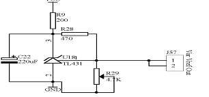在系统板上写有“参考电压源”区域中,是由TL431来完成参考电压的调节,调节范围在0-2.50V之间;主要为是系统板上需要参考电压芯片或是为外部设备提供参考电压,由Var Vref Out端口输出。其电路原理图如图1.2所示: