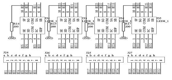 在该模块中,每一路端口对应着一个具体的数码管,具体的电路原理图如图1.11所示: