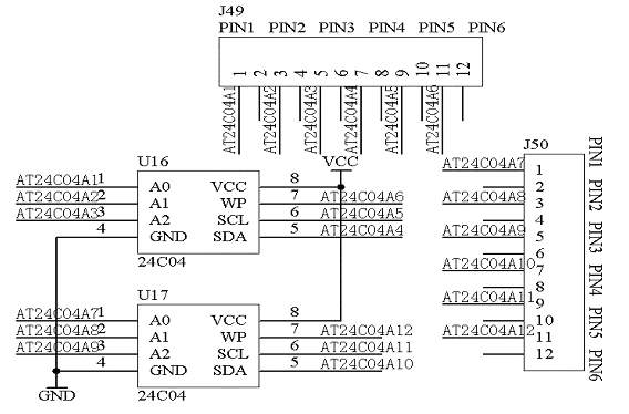 为了适应新技术的需要,增加了2路I2C总线接口,适用8脚的I2C总线芯片,左边的“PIN1 PIN2 PIN3 PIN4 PIN5 PIN6”与上面的接口连接,右边的“PIN1 PIN2 PIN3 PIN4 PIN5 PIN6”与下面的接口连接;具体的电路原理图如图1.21所示: