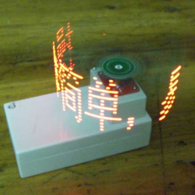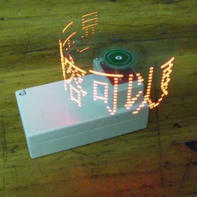 大家看到的图片中的文字是用电动机带动LED转动,用单片机控制LED点亮和熄灭来形成文字的,这些文字一看上去,就象悬浮在空中的文字,上下左右无牵无挂,给人以美好的回忆和享受。而对于电子爱好者来说,自己制作成功这样的作品,给你带来的开心喜悦简置无法形容。