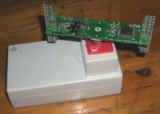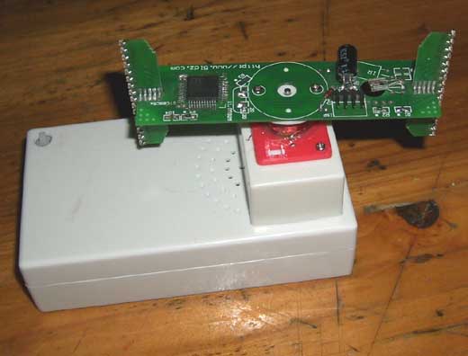 7、外壳支架:电机总得有个固定的地方才能让电路板转动。由于再开一个较大的新外壳模具价格可能超过20000元,再说本站也设计不出好的外观,出于实验好玩用途,还是可以用本站现成的具有一定的机械强度的多用制作盒来改装。由于是改装,请自己小心加工,不要伤到了手,万一加工坏了报废了,那就请自己再找个类似的支架来代替,总之,大家根据产品的工作原理来发挥,要求电动机和线圈能固定,发射管能固定,上面又能转动,这些机械的问题大家自己动手吧。