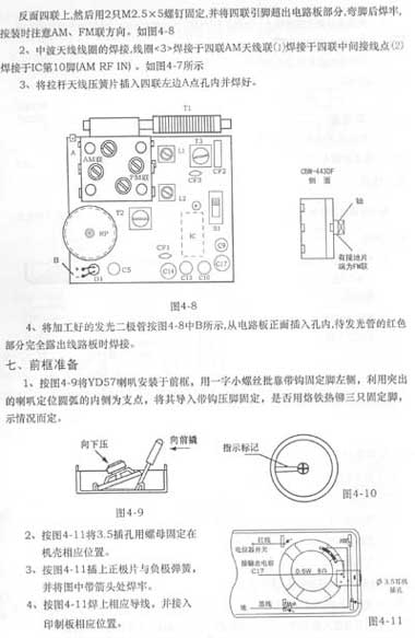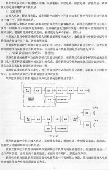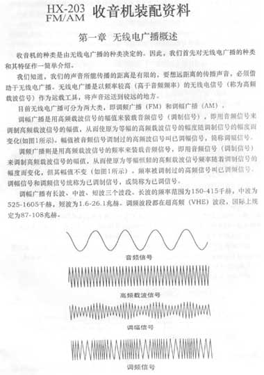 调幅(AM)部分:中波调幅广播信号邮磁棒天线线圈T1和可变电容C0、微调电容C01组成的调诣回路选择,送入IC第10脚。本振信号邮振荡线圈T2和可变电容C0、C04微调电容及与IC第5脚的内部电路组成的本机振荡器产生,并与由IC第10脚送入的中波调幅广播信号在IC内部进行混频,混频后产生的多种频率的信号,经过中频变压器T3